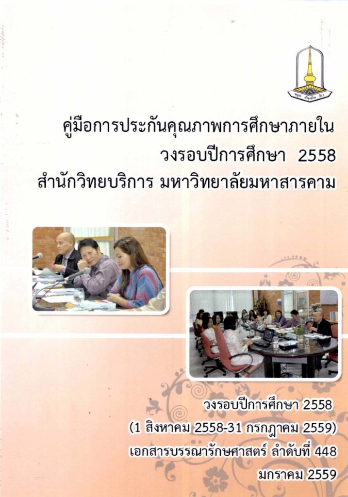 คู่มือการประกันคุณภาพการศึกษาภายใน วงรอบปีการศึกษา 2558 สำนักวิทยบริการ มหาวิทยาลัยมหาสารคาม