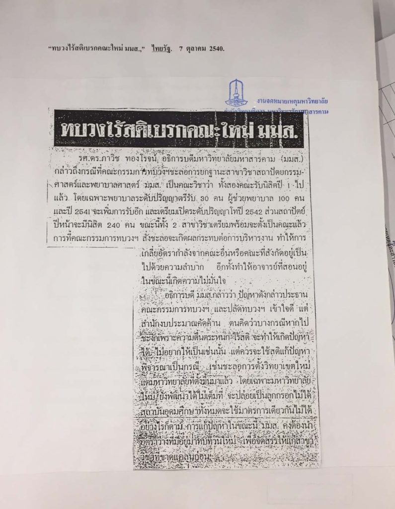 รองศาสตราจารย์ ดร.ภาวิช ทองโรจน์ อธิการบดีมหาวิทยาลัยมหาสารคาม กล่าวถึง คณะกรรมการทบวงมหาวิทยาลัยชะลอการยกฐานะสาขาวิชาสถาปัตยกรรมศาสตร์และพยาบาลศาสตร์ มหาวิทยาลัยมหาสารคาม เป็นคณะวิชา ว่าเป็นมหาวิทยาลัยตั้งใหม่ พัฒนาไม่ได้เต็มที่