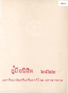 เอกสารคู่มือนิสิต ฉบับนี้ เป็นเอกสารคู่มือสำหรับนิสิต มหาวิทยาลัยศรีนครินทรวิโรฒ วิทยาเขตมหาสารคาม ผู้ช่วยศาสตราจารย์ ดร.ชาตรี เมืองนาโพธิ์ ดำรงตำแหน่งรองอธิการบดี วิทยาเขตมหาสารคาม