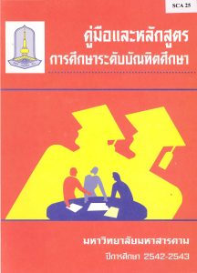 คู่มือและหลักสูตรการศึกษาระดับบัณฑิตศึกษา ปีการศึกษา 2542-2543 เนื้อหาให้ข้อมูลเกี่ยวกับปรัชญาการศึกษา ประวัติ สี ตราทางราชการของ มหาวิทยาลัยมหาสารคาม สารจากอธิการบดี รองอธิการบดีฝ่ายบัณฑิตศึกษา สารจากรองอธิการบดีฝ่ายกิจการวิชาการภายนอก รายนามคณะกรรมการสภามหาวิทยาลัย รายนามคณะกรรมการบริหารมหาิทยาลัยมหาสารคาม ประวัติบัณฑิตศึกษา ข้อบังคับ ระเบียบ และประกาศสำหรับนิสิต คำแนะนำและเรื่องทั่วไปที่นิสิตทราบ หลักสูตรการศึกษามหาบัณฑิต หลักสูตรศิลปศาสตรมหาบัณฑิต หลักสูตรบริหารธุรกิจมหาบัณฑิต หลักสูตรประกาศนียบัตรบัณฑิตทางการสอน ขั้นตอนการจัดทำวิทยานิพนธ์ ขั้นตอนการศึกษาค้นคว้าอิสระ