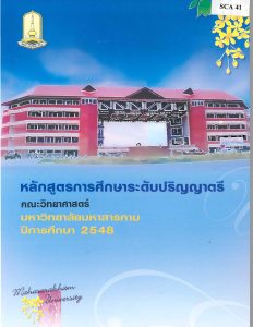 หลักสูตรการศึกษาระดับปริญญาตรี คณะวิทยาศาสตร์ ปีการศึกษา มหาวิทยาลัยมหาสารคาม 2548 เอกสารฉบับนี้ช่วงมหาวิทยาลัยมหาสารคาม มีนโยบายกระจายโอกาสทางการศึกษาทุกระดับ และทุกประเภทการศึกษา มหาวิทยาลัยจึงเป็นศูนย์กลางของการพัฒนาภูมิภาคอินโดจีน ทั้งนี้ได้ดำเนินการเปิดสอนหลักสูตรและสาขาวิชาต่าง ๆ ซึ่งมีความหลากหลาย และมีความเหมาะสมกับความต้องการของสังคมในท้องถิ่น