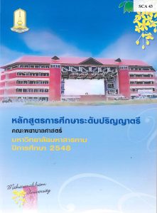 หลักสูตรการศึกษาระดับปริญญาตรี คณะพยาบาลศาสตร์ มหาวิทยาลัยมหาสารคาม ปีการศึกษา 2548 เอกสารฉบับนี้ช่วงมหาวิทยาลัยมหาสารคาม มีนโยบายกระจายโอกาสทางการศึกษาทุกระดับ และทุกประเภทการศึกษา มหาวิทยาลัยจึงเป็นศูนย์กลางของการพัฒนาภูมิภาคอินโดจีน ทั้งนี้ได้ดำเนินการเปิดสอนหลักสูตรและสาขาวิชาต่าง ๆ ซึ่งมีความหลากหลาย และมีความเหมาะสมกับความต้องการของสังคมในท้องถิ่น