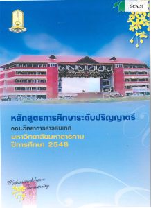 หลักสูตรการศึกษาระดับปริญญาตรี คณะวิทยาการสารสนเทศ มหาวิทยาลัยมหาสารคาม ปีการศึกษา 2548 เอกสารฉบับนี้ช่วงมหาวิทยาลัยมหาสารคาม มีนโยบายกระจายโอกาสทางการศึกษาทุกระดับ และทุกประเภทการศึกษา มหาวิทยาลัยจึงเป็นศูนย์กลางของการพัฒนาภูมิภาคอินโดจีน ทั้งนี้ได้ดำเนินการเปิดสอนหลักสูตรและสาขาวิชาต่าง ๆ ซึ่งมีความหลากหลาย และมีความเหมาะสมกับความต้องการของสังคมในท้องถิ่น