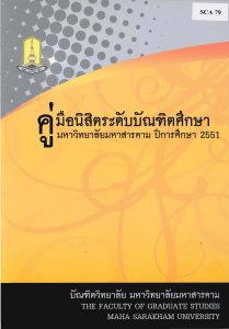 คู่มือนิสิตระดับบัณฑิตศึกษา มหาวิทยาลัยมหาสารคาม ปีการศึกษา 2551 เป็นคู่มือให้นิสิตใช้ระหว่างการศึกษาตลอดจบหลักสูตรประกอบด้วย ข้อมูลที่เกี่ยวข้องกับบัณฑิตศึกษาของมหาวิทยาลัย ระเบียบ ข้อบังคับ ประกาศมหาวิทยาลัย ค่าหน่วยกิต ค่าธรรมเนียมการศึกษาและปฏิทันการศึกษา