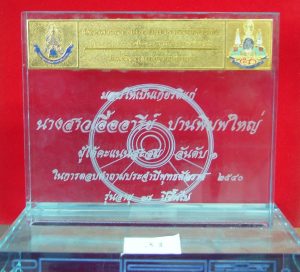 นางสาวเอื้ออารีย์ ปานพิมพ์ใหญ่ข้าราชการสำนักวิทยบริการ ได้รับโล่รางวัล ผู้ได้คะแนนสะสม อันดับ 1 ในการตอบคำถามประจำปี พ.ศ.2540 รุ่นอายุ 18 ปีขึ้นไป ของโครงการสารานุกรมไทยสำหรับเยาวชน โดยพระราชประสงค์ ในพระบาทสมเด็จพระเจ้าอยู่หัว ในเครือข่ายกาญจนาภิเษกฯ ณ สวนจิตรลดา กรุงเทพมหานคร