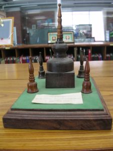วันที่ 5 กุมภาพันธ์ 2542 วิทยาลัยเทคนิคมหาสารคาม มอบของที่ระลึกเป็นพระธาตุนาดูนจำลอง แด่ สำนักวิทยบริการ มหาวิทยาลัยมหาสารคาม