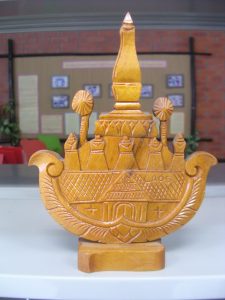 สาธารณรัฐประชาธิปไตยประชาชนลาว มอบภาพไม้แกะสลักรูปพระธาตุ และสัญญาลักษณ์ สปป.ลาว (ขนาดเล็ก) เป็นของที่ระลึกแด่สำนักวิทยบริการ มหาวิทยาลัยมหาสารคาม