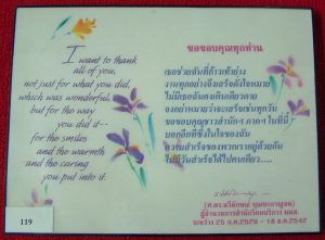 ศาสตราจารย์ ดร. .ฉวีลักษณ์ บุณยะกาญจน มอบป้ายคำขวัญขอบคุณ ของ ศาสตราจารย์ ดร. .ฉวีลักษณ์ บุณยะกาญจน ให้ไว้กับชาว สำนักวิทยบริการ มหาวิทยาลัยมหาสารคาม เพื่อเป็นที่ระลึก เตือนใจ